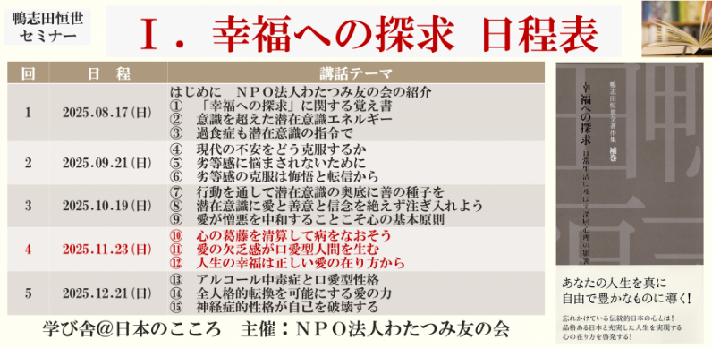 第4回鴨志田恒世オンラインセミナー開催のご案内